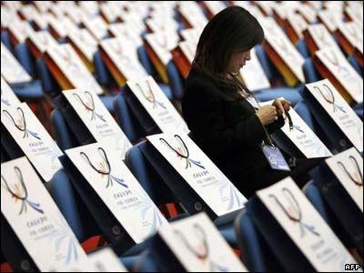 يک بازديد کننده پيش از آغاز سومين نمايشگاه کشورهای جنوب شرقی آسيا در چين.