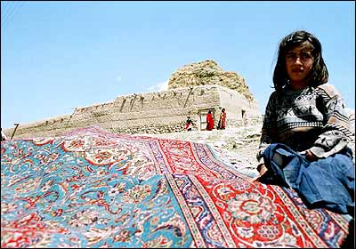 روستائيان پس از بافتن فرشهايشان آنها را می شويند و مقابل آفتاب می گذارند. صنعت قاليبافی يکی از منابع اصلی درآمد روستائيان اين منطقه است.