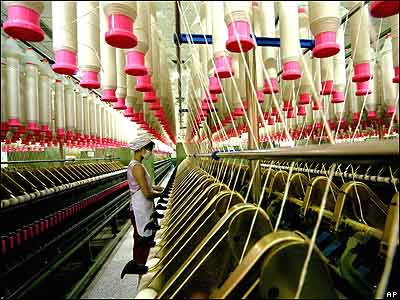 کارگر چينی در يک کارخانه پارچه بافی در چين. در حالی که چين از دو برابر شدن کمک های کشورش به قاره آفريقا خبر داده است، بسياری از کارگران آفريقايی شرکتهای چينی، نسبت به آنچه برخورد نامناسب و پرداخت حقوق کم از سوی کارفرمايان می دانند، دست به اعتراض زده اند.
