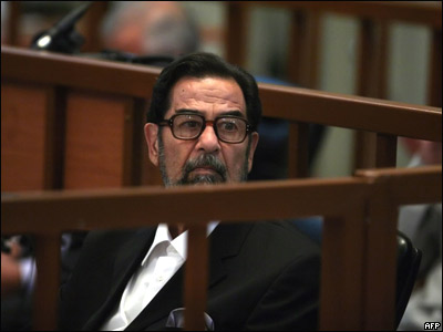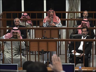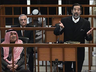 صدام حسين، رهبر پيشين عراق، به اعدام با طناب دار محکوم شد. در جلسه پايانی دادگاه که روز يکشنبه 5 نوامبر در ميان تدابير شديد امنیتی در بغداد، پايتخت عراق، برگزار شد، قاضی رئيس جمهور سابق عراق را به جرم 'جنايت عليه بشريت' به اعدام محکوم کرد.