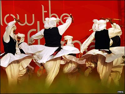 رقص سنتی در حاشيه مراسم حمل مشعل بازيهای آسيايی در مشهد