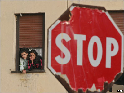 دو نفر از ساکنان يکی از محلات شهر ناپل در جنوب ايتاليا عمليات نيروهای پليس اين کشور را در مقابل منزلشان تماشا می کنند. گزارش شده که حداقل 30 نفر در جريان عمليات پليس در شهر ناپل دستگير شدند.