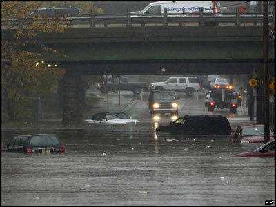 پنج خودرو در سيلاب در نيوجرسی آمريکا گير افتاده اند.