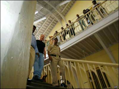 یکی از محافظان آنجلينا جولی، بازیگر هالیوود، در دادگاهی در هند. سه تن از محافظان شخصی خانم جولی به اتهام اعمال خشونت عليه حضار در هنگام بازدید این بازیگر از يک مدرسه، به دادگاه فراخوانده شده اند.