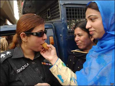حامیان تغییر قانون تجاوز در پاکستان در حال پخش شیرینی. براساس این تغییر پیگیری شکایات مربوط به تجاوز برای زنان پاکستانی آسان تر می شود.