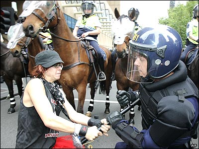 امروز همزمان با برگزاری اجلاس وزیران دارایی نوزده کشور قدرتمند اقتصادی جهان در ملبورن استراليا، تظاهراتی در اين شهر بر عليه اين اجلاس برگزار شد. عکس فوق درگیری يک تظاهر کننده را با پليس نشان میدهد.