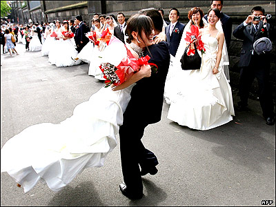 هفتاد و يک زوج ساکن شهر تيانجين چين، مراسم عروسی خود را به شکل گروهی در ملبورن استراليا (شهر خواهر خوانده تيانجين) برگزار کردند.