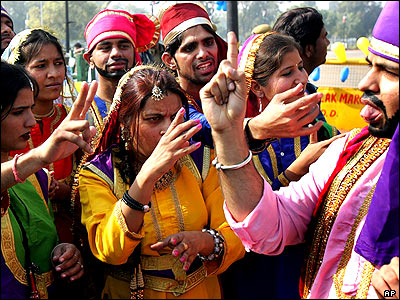 شرکت کنندگان در مراسمی به مناسبت روز جهانی معلولان در دهلی نو در هند در حال گفتگو با زبان اشاره. بنا بر آمار سازمان جهانی بهداشت هم اکنون معلولان بيش از ۶۰۰ ميليون نفر از جمعیت جهان را تشکیل می دهند