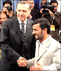 رجب طيب اردوغان با محمود احمدی نژاد در تهران. آقای اردوغان برای يک سفر یک روزه امروز وارد تهران شده است
