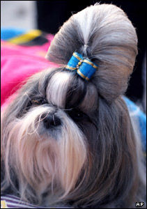سگی شرکت داده شده در مسابقه بهترين تزيين موی سگ در شهر "لوی تنگ" در مرکز چين. در سالهای اخير نگهداری از حيوانات خانگی محبوبيت زيادی در چین پيدا کرده است. |
