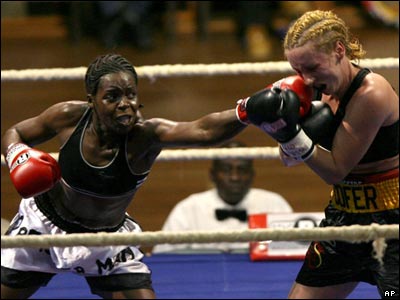 بوکس بازان کشورهای چين و آمريکا در حال رقابت در مسابقات جهانی بوکس زنان در نايروبی در کشور کنيا. اين دوره مسابقات با پيروزی بوکس باز چين به پايان رسيد.