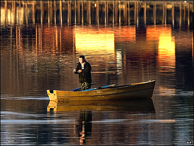 مردی در حال ماهيگيری در يک درياچه در بخارست، رومانی. امسال دمای هوا در اين کشور به طور غير معمول گرم است.