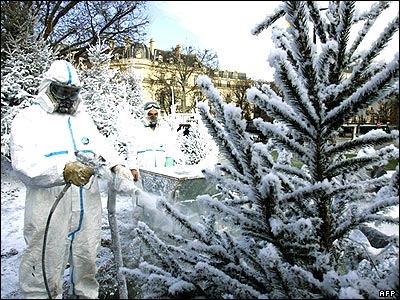 تزئين درخت کريسمس در شانزه ليزه پاريس.