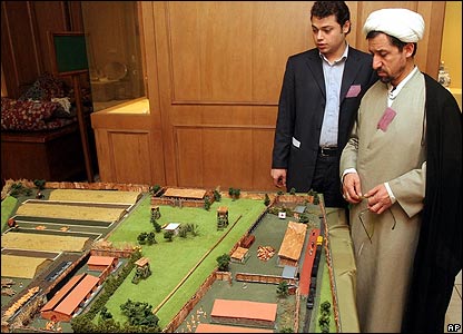 در حاشيه کنفرانس هولوکاست در تهران: علی فصيحی، روحانی ايرانی در حال تماشای ماکتی از اردوگاه های مرگ آلمان نازی که در طول جنگ جهانی دوم در لهستان برپا شده بود.