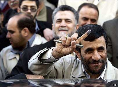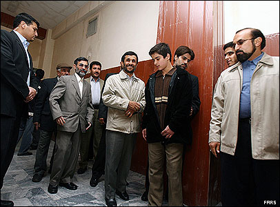 محمود احمدی نژاد در صف رای دهندگان در مسجد جامع نارمک. (عکس از ساتيار امامی)