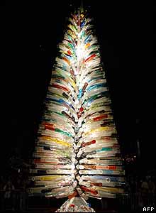حتی در کشورهای غير مسيحی آسیا نيز جشنهای کريسمسی برگزار می شود. درختی در شهر چانگ کينگ که با استفاده از 100 هزار قوطی کوکا کولا درست شده است.