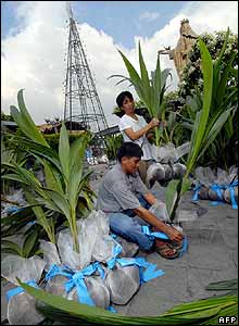 در حومه شهر مانيل، پايتخت فيليپين، برای تزئين اين درخت غول پيکر از نارگيل استفاده می شود.
