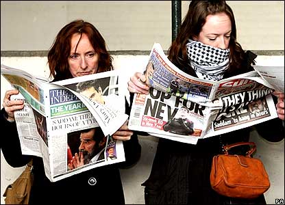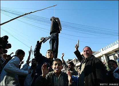 خبر به دار آويخته شدن صدام حسين با شادی مردم در خيابان های شهر صدر از مناطق شيعه نشين بغداد همراه بود