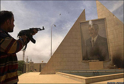 با آنکه او در طول سالهای 1990 همچنان بر سر قدرت ماند اما هميشه زير نظر بازرسان سازمان ملل بود که مظنون بودند صدام در صدد توليد سلاحهای کشتار جمعی است. در سال 2003، سرانجام آمريکا تصميم به پائين کشاندن صدام از اريکه قدرت گرفت و با حمله نظامی به عراق، به ديکتاتوری 25 ساله او پايان داد.
