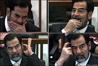 صدام با ورود نيروهای نظامی آمريکا به بغداد، گريخت که نهايتا روز 14 دسامبر در حفره ای که ماه ها در آن پنهان بود به دام افتاد. محاکمه او از اکتبر 2005 به اتهام کشتار غير نظاميان آغاز شد.
