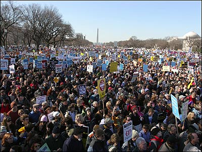 در تظاهراتی گسترده در واشنگتن دهها هزار نفر به سياست دولت آمريکا اعتراض کردند و خواهان خروج سربازان آمريکايی از عراق شدند.