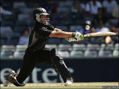 لو وينست از زلاندنو به توپ ضربه می زند. زلاندنو و انگلستان در نهمين بازی از رقابتهای کريکت کشورهای مشترک المنافع در پرت استراليا در برابر هم قرار گرفتند.