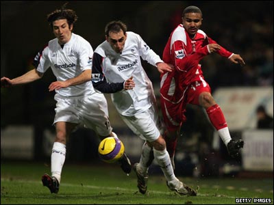 در رقابتهای ليگ برتر انگلستان، دو تيم بولتون و چارلتون در استاديوم ريباک بولتون در برابر هم قرار گرفتند. در اين بازی دو تيم 1-1 مساوی شدند. در سمت چپ تصوير آندرانيک تيموريان بازيکن ايرانی بولتون ديده می شود.