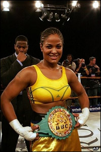 لیلا علی بوکسور آمریکایی، دختر اسطوره بوکس جهان محمد علی کلی، در مسابقه قهرمانی بوکس حرفه ای زنان، گوندولین اونیا از غنا را شکست داد. لیلا در دقیقه یک این مسابقه، از 10 راند مشخص شده اونیل را ناک اوت کرد