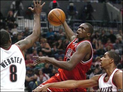 در مسابقات ليگ بسکتبال حرفه ای آمريکا، ان بی ای، شیکاگو بولز، پورتلند تریل بلیزرز را 88 به 86 شکست داد. اين مسابقه در پورتلند برگزار شد. لول دنگ از سودان بازیکن تيم بولز، به سمت سبد حمله می کند