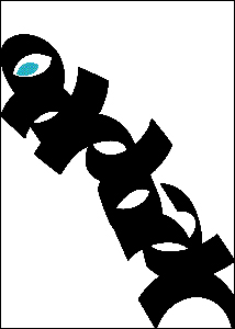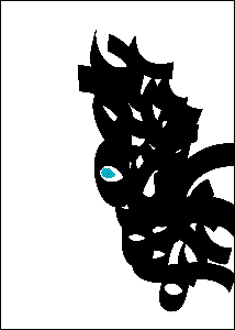 اين لکه چشم يا نگينی را در ذهن تداعی می کند. رنگ فيروزه ای رنگی است شرقی و ويژه آثار تجسمی ايران که در معماری و کاشيکاری های ايرانی بسيار از آن استفاده می شود.