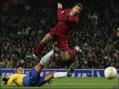 تيم فوتبال پرتغال در بازی دوستانه ای بين اين تيم و برزيل که در استاديوم امارات در لندن برگزار شد، برزيل را دو بر صفر شکست داد.