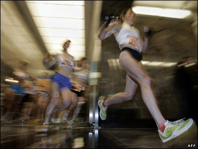 سی امين مسابقه سالانه "دو در ساختمان امپاير استيت" در نيويورک برگزار شد. امی فردريکس (چپ) در رقابتهای زنان اين مسابقه چهارم شد.