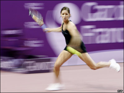 در رقابتهای تنيس آزاد پاريس، دينارا سفینا از روسیه دو بر صفر کامی پن (در تصویر) از فرانسه را شکست داد.