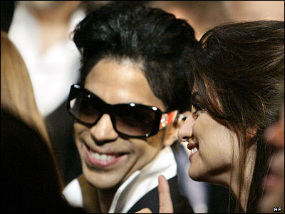 پرينس، خواننده معروف و پنه لوپه کروز، هنرپيشه سينما در ميان حاضران در مراسم تقدير از جيانی ورساچه و خواهرش دوناتلا ورساچه، به خاطر فعاليت هايشان در دنيای مد و سرگرمی.