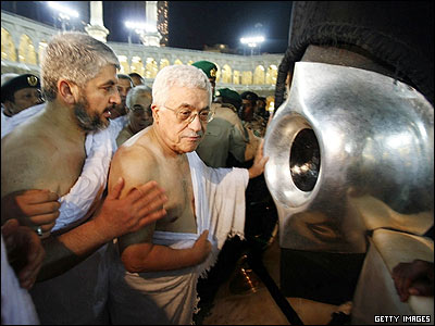 محمود عباس، رئيس دولت خودگردان فلسطين و رهبر حماس، خالد مشعل مراسم حج عمره را در مکه به جا آوردند.