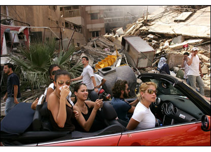 اسپنسر پلات، عکاس آمريکايی (گتی ايمجز) امسال برنده جايزه نخست 'عکس خبری جهان' شد. عکس او که در 15 اوت 2006 در جريان جنگ اسرائيل و حزب الله لبنان گرفته شده، عده ای جوان را نشان می دهد که از ميان خرابه هايی که در پی بماباران هوايی اسرائيل در منطقه ای در جنوب بيروت بجا مانده، می گذرند.
