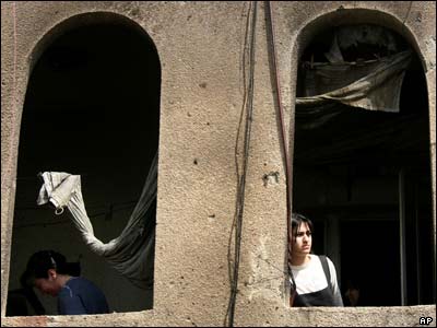 دختر نوجوانی پس از انفجار یک خودروی بمب گذاری شده در بغداد که منجر به شکسته شدن شیشه های خانه شد به بیرون می نگرد