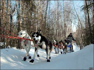 روبرت سورلی دو بار قهرمان سورتمه سواری از نروژ، در تمرینات رسمی پیش از مسابقات سورتمه با سگ، در آلاسکا
