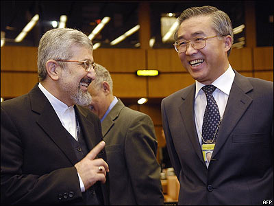 علی اصغر سلطانیه، نماینده ایران در آژانس بین المللی انرژی اتمی با نماینده چین در وین گفتگو می کند.