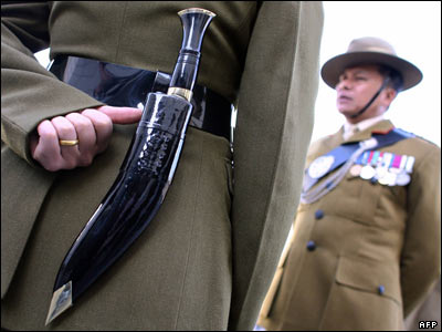 سربازان گورخا با لباس ها و چاقوی سنتی در لندن: این سربازان تشریفاتی اصلیتشان نپالی است و نزدیک دویست سال است جزئی از ارتش بریتانیا هستند. قرار است آنها از این پس مشابه بقیه کارمندان ارتش بریتانیا مستمری بگیرند. |