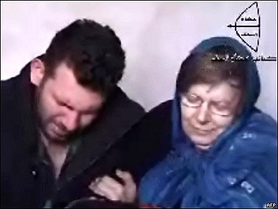 عکسی منتشر شده از فیلمی ویدیویی که گفته می شود متعلق به دو آلمانی است که پیشتر در عراق توسط افرادی ناشناس به گروگان گرفته شده اند.