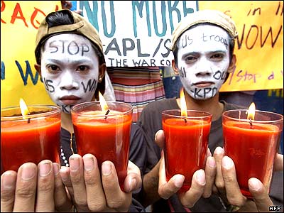 در چهارمين سالگرد حمله نظامی به عراق، تظاهرات کنندگان فيليپینی به نشانه اعتراض با در دست داشتن شمع مقابل سفارت آمریکا در مانیل تجمع کردند. دولت فيليپین به عنوان يکی از متحدان آمريکا از حمله اين کشور به عراق حمايت کرده بود.