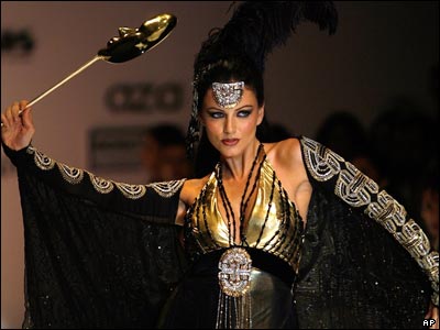 لباسی از گاياتری خانا، طراح لباس هندی در دومين روز هفته مد لاکمه که از روز 27 مارس در بمبئی آغاز شده است.