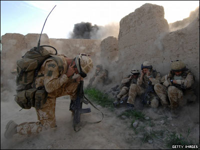 سربازان بریتانیایی حین عملیاتی علیه جنگجویان طالبان در افغانستان. |