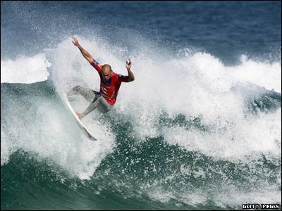 کلی اسلیتر، موج سوار آمریکایی در مرحله سوم از مسابقات موج سواری حرفه ای 'ریپ کرل' Rip Curl Pro در استرالیا.