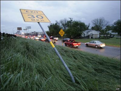طوفان شدید در شمال تکزاس، به یک تابلوی علایم راهنمایی کنار جاده، آسیب رساند |