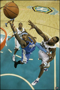 در ادامه مسابقات بسکتبال حرفه ای آمریکا (NBA)، دوتیم دنوور ناگتز و نیواورلئان در ایالت اوکلاهوما به مصاف هم رفتند. ناگتز 107 بر 105 نیواورلئان را شکست داد.