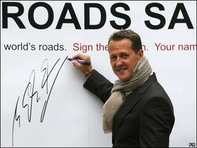 مایکل شوماخر، قهرمان اتومبیلرانی جهان، به همراه تونی بلر، نخست وزیر بریتانیا، به مناسبت آغاز هفته جهانی "ایمنی راه ها" مشترکا خواستار برگزاری کنفرانسی از سوی سازمان ملل برای مبارزه با تلفات حوادث رانندگی شده اند. |