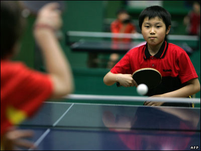 دانش آموزان چینی در حال تمرین پینگ پونگ در مدرسه ورزش شی چاهای