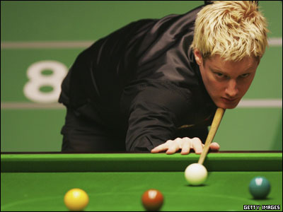 در ادامه رقابتهای جهانی اسنوکر موسوم به 888 که در شفیلد برگزار می شود، نیل رابرتسون از استرالیا و رایان دی از ولز در برابر هم قرار گرفتند.